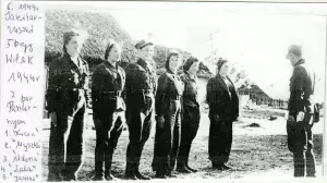 V Brygada Wileńska Armii Krajowej w marszu. Od lewej: rtm. Zygmunt Szendzielarz - "Łupaszko", kapelan - ks. Aleksander Grabowski "Ignacy" (piąty z lewej), dowódca 1 kompanii V Brygady - ppor. Wiktor Wiacek "Rakoczy" (szósty z lewej), por. Grabowski "Pancerny"(dziewiąty z lewej) i ppor. Sergiusz Sprudin - fotoreporter z Komendy Okręgu Wileńskiego AK