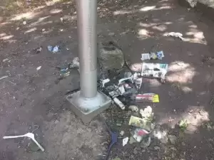 Nie można przejść, bo z ziemi sterczą tulipany z rozbitych butelek. Przesiaduje tam średzka młodzież i nie tylko. Wieczorami oraz w nocy są libacje, okoliczni mieszkańcy mają problem z zaśnięciem, uwagę zwrócić strach.