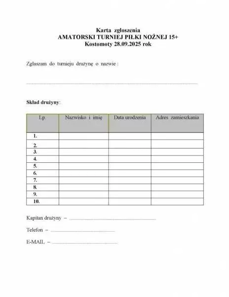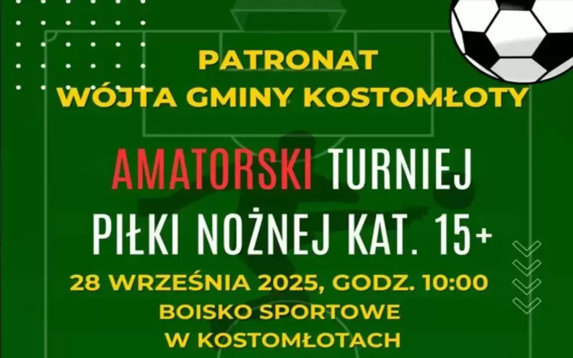 Wójt Gminy Kostomłoty Edward Kulig zaprasza do zgłaszania drużyn do Amatorskiego Turnieju Piłki Nożnej 15+ !
