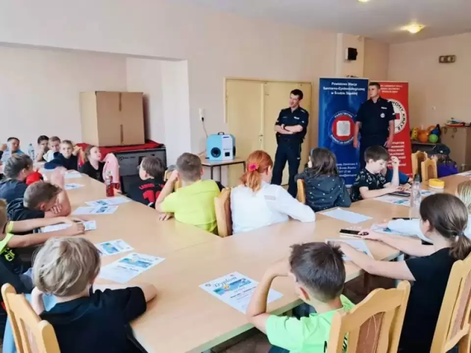 Dzielnicowi z Posterunku Policji w Kostomłotach odwiedzili Gminny Ośrodek Kultury w Kostomłotach, gdzie organizowana jest półkolonia dla najmłodszych. Tam policjanci spotkali się z dziećmi, aby przeprowadzić pogadankę dotyczącą bezpiecznych wakacji w ramach akcji "Kręci mnie bezpieczeństwo w lecie".