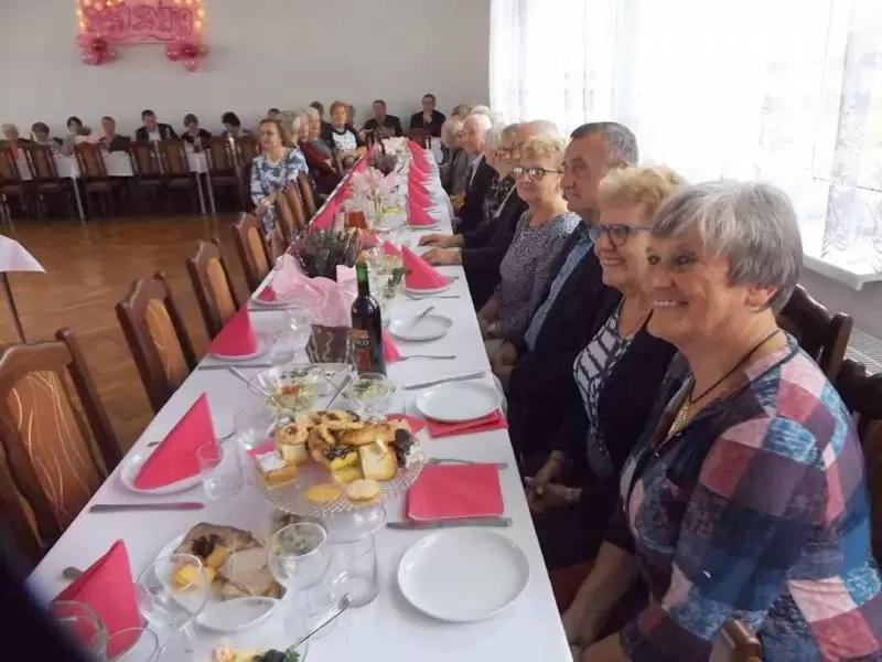 Zabawę Seniorzy rozpoczęli od toastu przy lampce szampana i odśpiewaniu Sto lat. Następnie zostali poczęstowani tortami, przygotowanymi przez właściciela piekarni Rogalik.