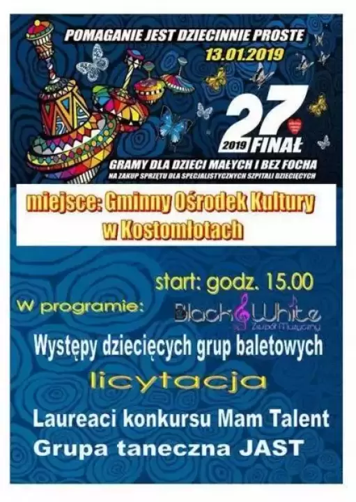 Już 13 stycznia o godzinie 15:00 wielki finał Wielkiej Orkiestry Świątecznej Pomocy odbędzie się również w Gminnym Ośrodku Kultury w Kostomłotach.