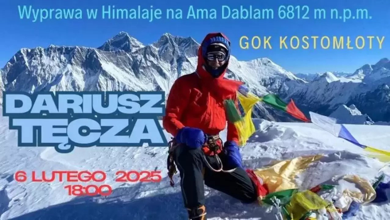 Zapraszamy na inspirujące spotkanie z himalaistą i ultra maratończykiem Dariuszem Tęczą, który zdobył m.in. Ama Dablam i Island Peak! Spotkanie odbędzie się 6 lutego 2025 r. o godz. 18:00 w Gminnym Ośrodku Kultury w Kostomłotach. Wstęp wolny.