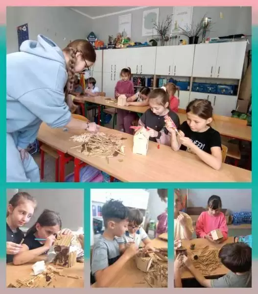 Uczennice klasy VIII a przeprowadziły zajęcia w klasie II b przybliżając uczniom zagadnienie wagi bioróżnorodności w przystępny i zabawny sposób. Warsztaty z budowy domków dla owadów były nie tylko pouczające, twórcze ale i zabawne.