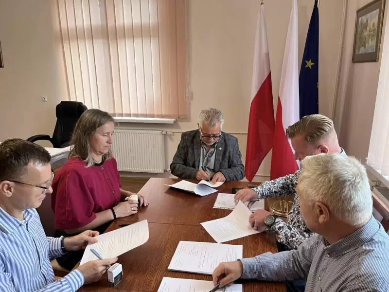 Dziś, 15 września 2025 r., Wójt Gminy Kostomłoty – Edward Kulig oraz Skarbnik – Rafał Hossa podpisali umowę na realizację inwestycji z firmą FreeKids s.c., wyłonioną w postępowaniu przetargowym.