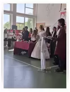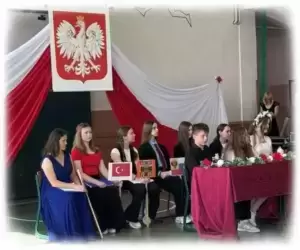 Patriotyczne spotkanie rozpoczęło się wprowadzeniem sztandaru szkoły i wspólnym odśpiewaniem hymnu państwowego. Następnie uczniowie przedstawili wzruszający montaż słowno-muzyczny zatytułowany „Sąd nad Konstytucją”. Dopełnieniem występu był liryczny śpiew oraz scenki, w których uczniowie w humorystyczny sposób przedstawili realia XVIII- wiecznej Rzeczypospolitej.