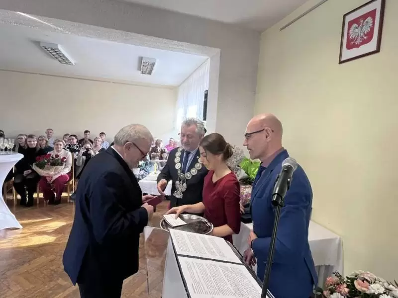 Uroczystego aktu dekoracji dokonał Wójt Gminy Kostomłoty Edward Kulig wraz z Kierownikiem Urzędu Stanu Cywilnego Katarzyną Stadnik. Pisemne gratulacje na ręce Jubilatów przekazał Przewodniczący Rady Gminy Kostomłoty Mariusz Żałobniak. Sekretarz Gminy Kostomłoty Anna Orzechowska oraz Zastępca Kierownika Urzędu Stanu Cywilnego Joanna Klajn wręczyły kwiaty oraz okolicznościowe upominki.