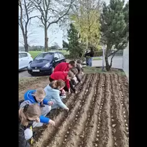 Akcja sadzenia żonkili jest nie tylko częścią ogólnopolskiej inicjatywy „Pola Nadziei”, ale jednocześnie wpisuje się w X edycję Dolnośląskiej Sieci Szkół Promujących Ekorozwój „Ziemia dla wszystkich”. Nasza szkoła już po raz dziesiąty podejmuje działania ekologiczne – tym razem pod hasłem „Tajemniczy Ogród”. Dzięki wspólnemu zaangażowaniu powstaje przestrzeń pełna kwiatów, dobra i nadziei, która wiosną rozkwitnie nie tylko żonkilami, ale także innymi roślinami, czyniąc nasz ogród jeszcze bardziej różnorodnym i pięknym.