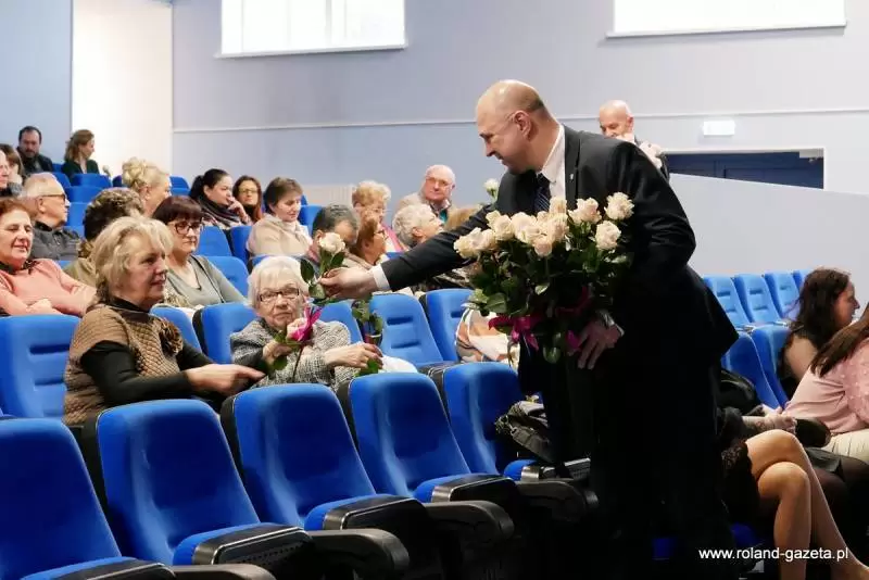 Każda z pań obecnych na sali otrzymała m.in. z rąk wójta Andrzeja NIemca piękną różę.