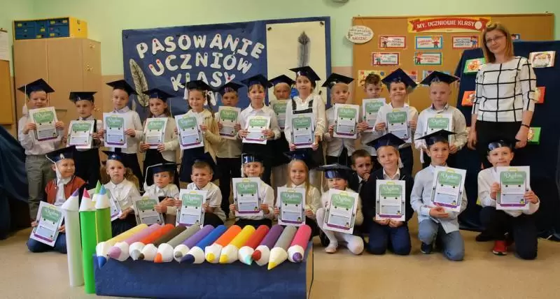 Podczas tego dnia towarzyszyli im rodzice i zaproszeni goście. Uczniowie otrzymali prezenty w postaci kuferków z drobiazgami i słodki upominek. Pieczę nad pierwszoklasistami będą sprawować: Anna Korsan, Anna Iwaszko oraz Grażyna Mazur.