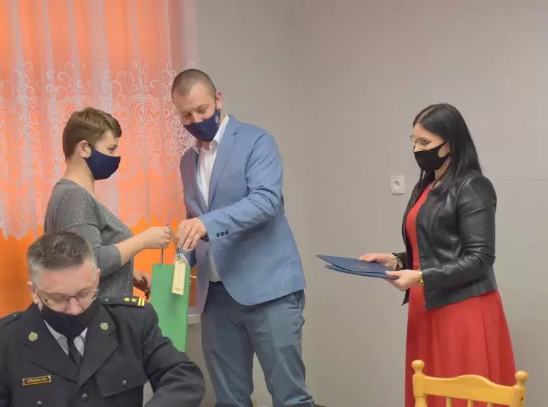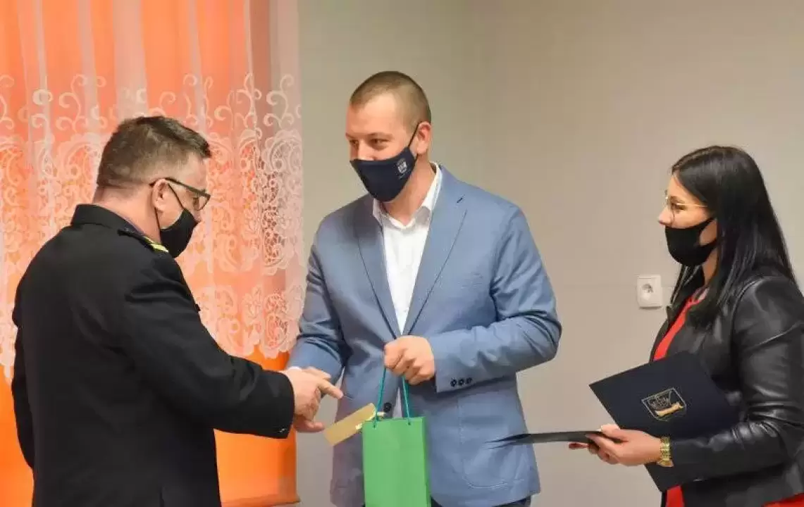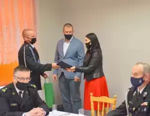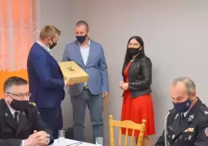 Przedstawiciele jednostek OSP z terenu gminy Malczyce: Wilczków, Rusko, Malczyce i Chomiąża oraz Komendant PSP w Środzie Śląskiej odebrali podziękowania i gratulacje od przedstawicieli władz samorządowych gminy Malczyce oraz władz powiatu średzkiego.