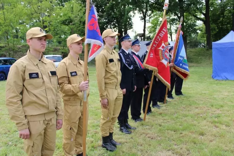 Uroczysty apel rozpoczął się od złożenia raportu przez dowódcę uroczystości Naczelnika OSP Chomiąży druha Tomasza Pasiuta. Raport odebrał Wiceprezes Zarządu Wojewódzkiego ZOSP RP we Wrocławiu dh Bogdan Wilczak.
