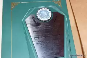 Po filmie gospodarze przeszli do najważniejszej części spotkania - wręczenia medali, dyplomów i podziękowań.