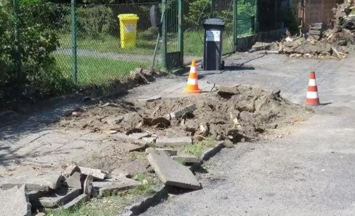 Obecnie trwają prace polegające na demontażu starych płyt chodnikowych i wycince drzew. Drzewa zostaną usunięte ze względu na ich stan, większość z nich jest pusta w środku i spróchniała.