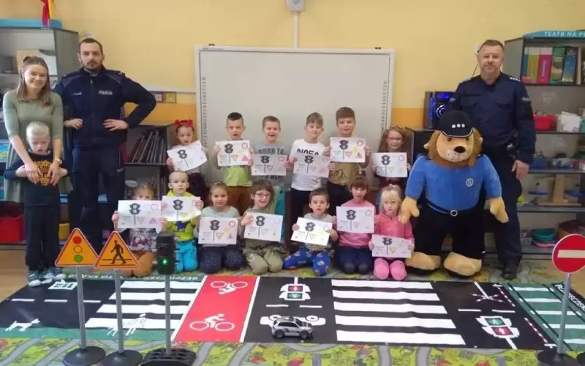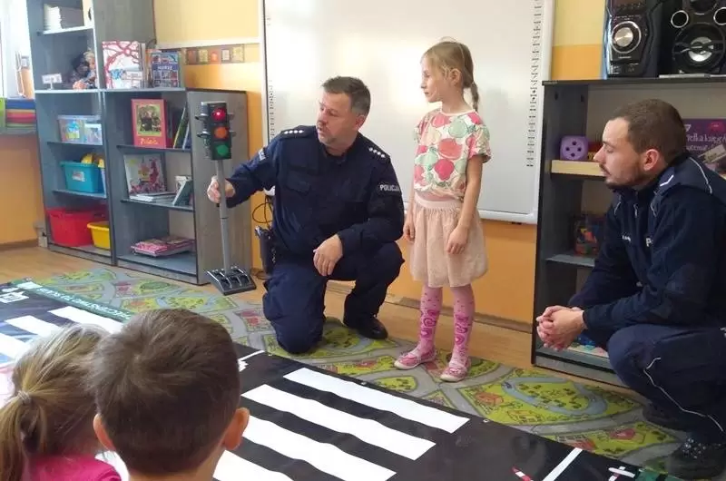 Aby łatwiej było dzieciom zrozumieć przekazywane im informacje policjanci korzystali z pozyskanych w ramach programu materiałów edukacyjnych takich, jak mata z przejściem dla pieszych i torami kolejowymi, znaki drogowe oraz sygnalizator świetlny. Dzięki temu każdy maluch z pewnością zapamięta, aby przechodzić po pasach "na zielonym" i pozostać na chodniku, kiedy sygnalizator wskazuje kolor czerwony.