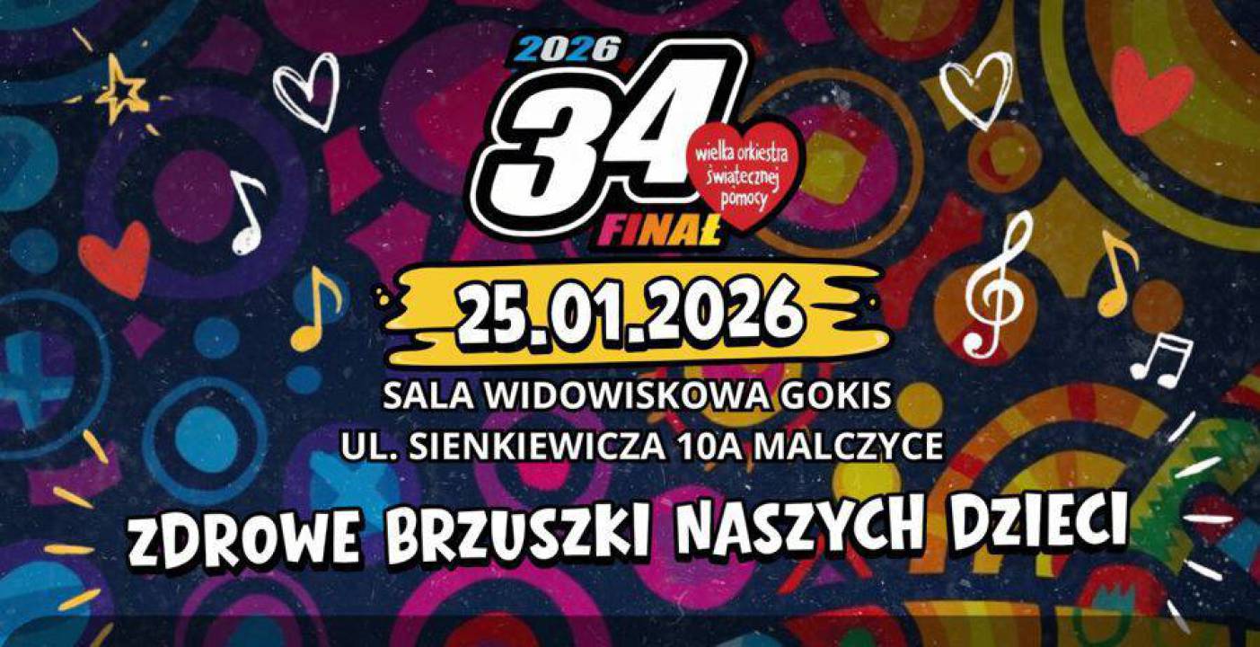 Malczyce przygotowują się do 34. Finału Wielkiej Orkiestry Świątecznej Pomocy. Wydarzenie odbędzie się 25 stycznia 2026 r. w sali widowiskowej GOKiS przy ul. Sienkiewicza 10A. Organizatorzy zapowiadają popołudnie pełne występów artystycznych, pokazów oraz licytacji na rzecz WOŚP.