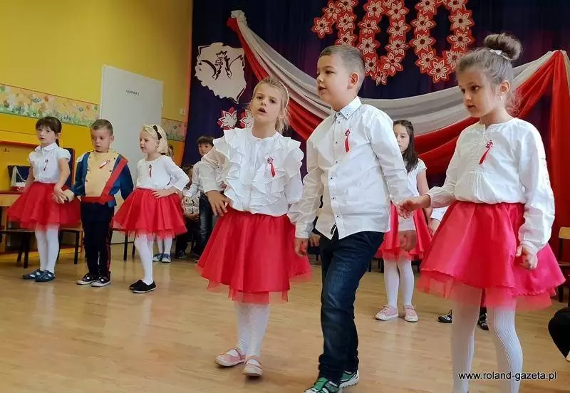 Przedszkolaki z grupy "Biedronki", pod bacznym okiem swojej wychowawczyni, przygotowały inscenizację poświęconą 100-leciu Odzyskania Niepodległości. Maluchy zaśpiewały też 4 zwrotki hymnu Polski i zatańczyły krakowiaka. Oczywiście nie mogło zabraknąć wiersza „Kto ty jesteś? Polak mały”.