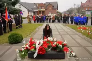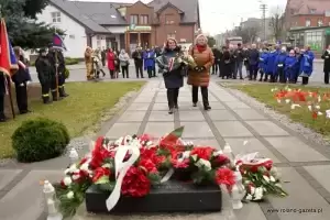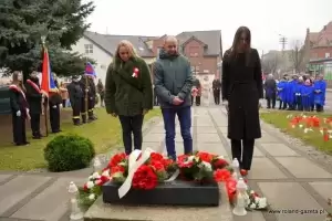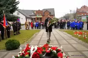 Delegacje złożyły wieńce pod obeliskiem poświęconym żołnierzom różnych narodowości, którzy w czasie II wojny światowej walczyli z nazistami o pokój i wolną Polskę. Uczczono tu również pamięć poległych i 2 Średzki Szczep Harcerski "Cztery Strony Świata" podniósł flagę narodową na maszt.