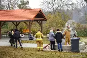 Na zewnątrz ochotnicy z jednostek OSP serwowali grochówkę, przygotowaną przez KGW z Rachowa, Chomiąży oraz Dębic i kiełbaskę z ogniska.