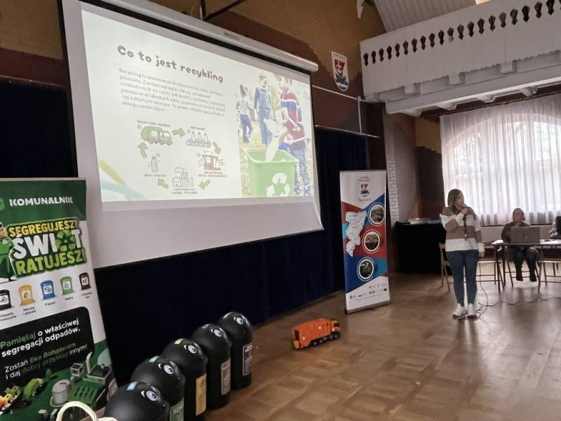 Podczas zajęć dzieci dowiedziały się, jak prawidłowo segregować śmieci, dlaczego warto dbać o środowisko i co dzieje się z odpadami po ich wyrzuceniu do odpowiednich pojemników.