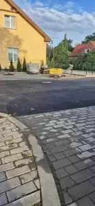 Dobiegają końca prace przy wylewaniu masy bitumicznej przed świetlicą w Mazurowicach. Zadanie realizowane jest w ramach wspólnej inwestycji, obejmującej budowę chodnika przy ul. Mickiewicza w Malczycach oraz asfaltowanie fragmentu drogi w centrum Chomiąży.
