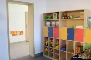 Budynek 2-oddziałowej placówki z 30 miejscami opieki dla dzieci w wieku od 1-3 lat, o powierzchni użytkowej 224,47 m² został wyposażony w 2 sale dla dzieci z łazienkami, szatnię, toaletę i szatnię dla personelu oraz toaletę dla osób z niepełnosprawnościami, pokój socjalny, gabinet dyrektora, kuchnię, zmywalnię, pomieszczenia na bieliznę i wózkarnię.
