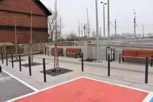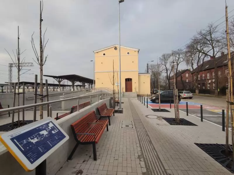 Metamorfozę przeszło bezpośrednie otoczenie dworca. Po wschodniej stronie budynku powstał mini plac dworcowy z na nowo zaaranżowaną zielenią, małą architekturą (ławki, kosze, oświetlenie) oraz miejscami postojowymi dla osób z niepełnosprawnościami, rodzin z dziećmi oraz typu kiss&ride. Natomiast przy zachodniej elewacji parking dla samochodów oraz wiata rowerowa ze stojakami dla jednośladów.