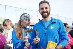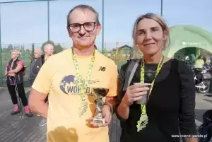 Zanim jednak biegacze wyruszyli w trasę wzięli udział w rozgrzewce, którą poprowadziła Ewa Skawińska. A gdy już przemierzyli urokliwe zakątki Wilkszyna spotkali się ponownie na ul. Sportowej, by odpocząć i odebrać wyjątkowe nagrody, które im wręczyli - burmistrz Miękini Jan Marian Grzegorczyn, sołtys Wilkszyna Wiesława Janusz, radny Rady Miejskiej Piotr Jankowiak.