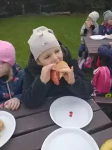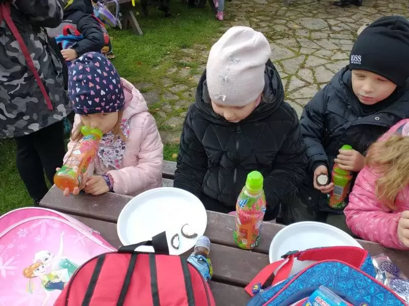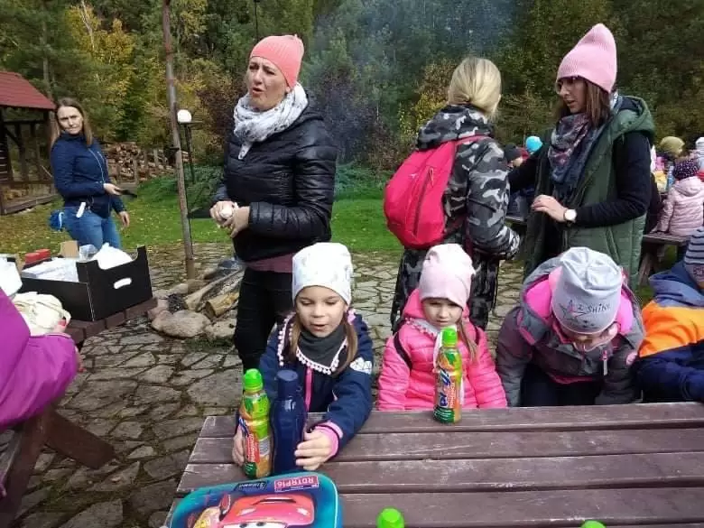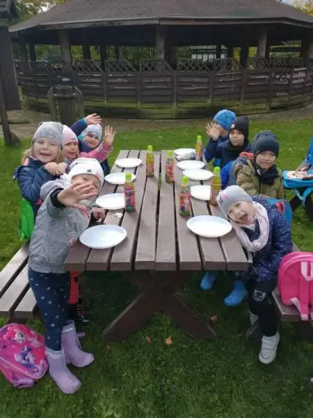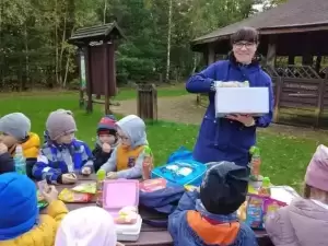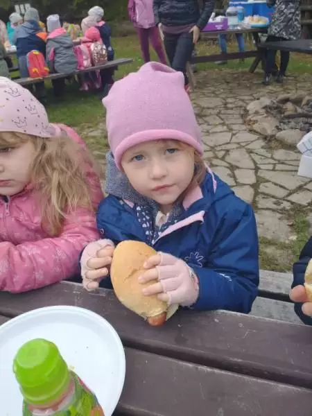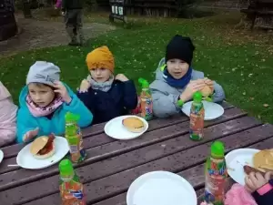 Po tej ciekawej lekcji przyrody, na dzieci czekały kiełbaski z ogniska oraz słodkości. Na koniec przedszkolaki podziękowały za cudownie spędzony czas, ogrom przekazanej wiedzy oraz otrzymane od pana leśniczego upominki.