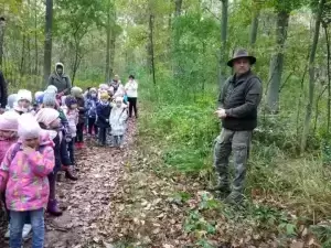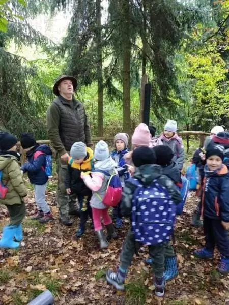 Zapoznał on również dzieci z ciekawostkami o lesie, zwierzętach leśnych, zasadach zachowania w tym miejscu oraz uświadomił najmłodszych, jak ważną rolę pełni las w życiu nie tylko zwierząt, ale też ludzi.
