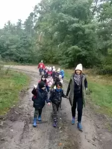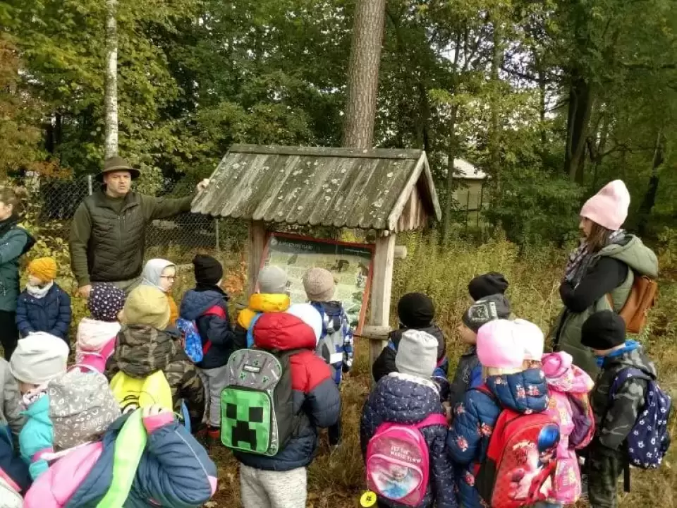 Dzieci z grup Kotki i Motylki z Przedszkola Publicznego nr 1 w Środzie Śląskiej udały się na ścieżkę dydaktyczną w Mrozowie (Nadleśnictwo Miękinia), po której oprowadzał je pan leśniczy Sylwester Hryńczak.
