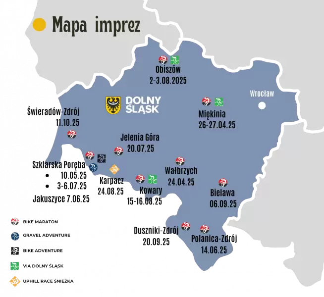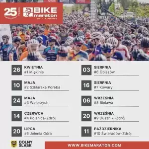 Bike Maraton 2025 zaczynamy w Miękini, a tegoroczną podróż przez Dolny Śląsk zakończymy 11 października w Świeradowie-Zdroju. W związku z obchodami okrągłych urodzin organizatorzy planują oczywiście szereg niespodzianek, rozłożonych w czasie na cały, długi sezon.