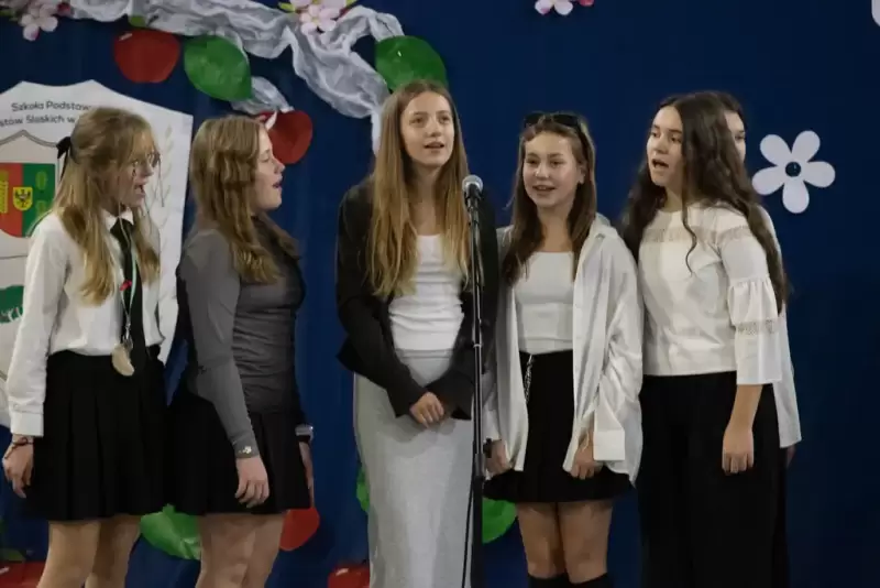 Uczniowie przygotowali piękną część artystyczną, pełną muzyki i radości, dziękując nauczycielom za codzienną pracę i opiekę. Gratulujemy całej społeczności szkolnej i życzymy wielu sukcesów w dalszym rozwoju!