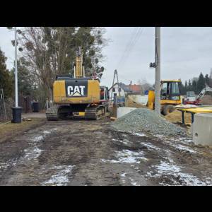 Mimo trudnych warunków atmosferycznych trwają intensywne prace związane z budową sieci kanalizacji sanitarnej w miejscowości Mrozów, realizowane w ramach dużego projektu infrastrukturalnego na terenie Gminy Miękinia. Obecnie roboty prowadzone są na ulicy Bolesława Chrobrego, gdzie powstaje nowa infrastruktura kanalizacyjna.