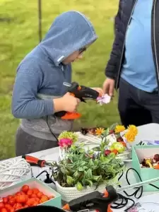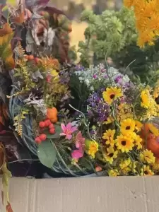 Wielkim zainteresowaniem cieszyły się warsztaty jesienne prowadzone przez Panią Basię z Coś Pięknego - Barbara Chojcan, podczas których mieszkańcy wspólnie tworzyli wianki z jesiennych darów natury.