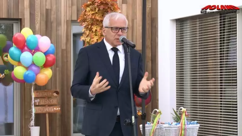 W towarzystwie zaproszonych gości, rodziców i dzieci wójt Jan Marian Grzegorczyn uroczyście otworzył wczoraj nowy budynek żłobka i przedszkola w Miękini.