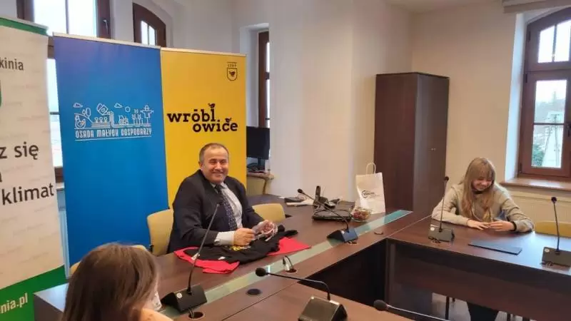 Burmistrz Jan Marian Grzegorczyn spotkał się wczoraj z dziećmi biorącymi udział w projekcie "Osada Małych Gospodarzy", które wcieliły się w rolę dziennikarzy.