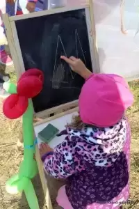 Na urodzinach sadu w Lutyni znalazło się wiele atrakcji dla młodszych uczestników - piaskownica, warsztaty plastyczne, pokazy z tworzenia balonowych przedmiotów.
