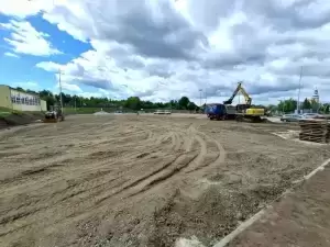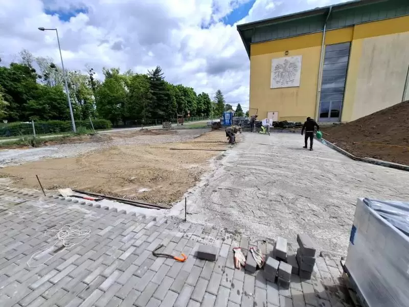 Trwa intensywna realizacja inwestycji związanej z budową nowoczesnego kompleksu sportowo-rekreacyjnego. Obecnie wykonywane są nawierzchnie parkingu i ciągów komunikacyjnych, formowane są skarpy oraz prowadzone humusowanie terenu. Równocześnie trwa wyrównywanie boiska i bieżni, które w kolejnym etapie zostaną pokryte sztuczną trawą oraz nawierzchnią poliuretanową.