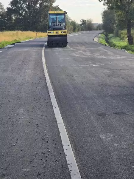 Wykonawca, firma Berger Bau, kładzie już ostatnie warstwy nawierzchni bitumicznej, a po pomyślnych odbiorach technicznych droga będzie wkrótce gotowa do użytku. Już niebawem mieszkańcy będą mogli cieszyć się nową, wygodną trasą!