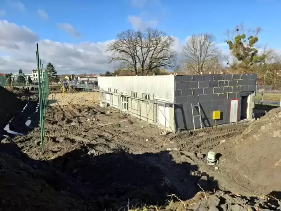 Trwają prace przy budowie budynku sanitarno - szatniowego w Miękini. Wykonano kanalizację sanitarną i deszczową, trwają prace elektryczne wewnątrz budynku, wykonywane jest przyłącze do sieci energetycznej oświetlenia zewnętrznego. Termin zakończenia prac to czerwiec 2025 roku.