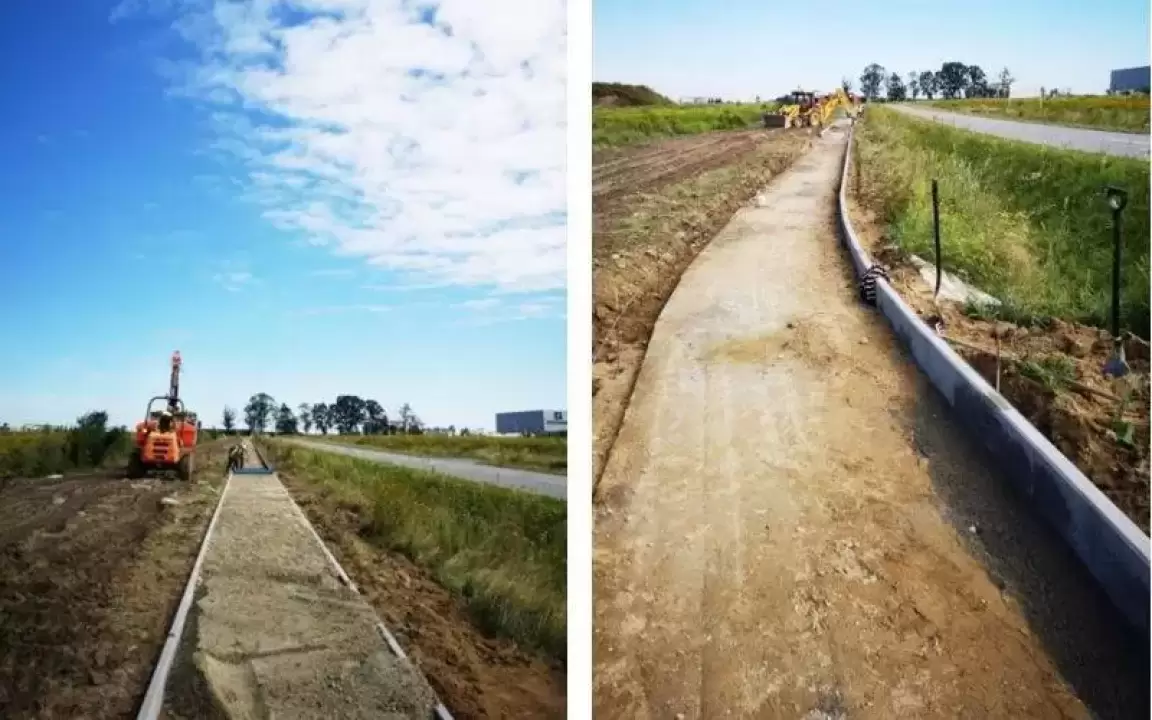 W ostatnich dniach rozpoczęto m.in. prace brukarskie i układanie betonowych obrzeży pod przyszłą ścieżkę na jednym z odcinków. Kontynuowane są również prace związane z wykonaniem stabilizacji na kolejnych odcinkach inwestycji.