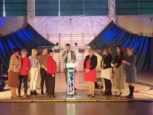 Na zorganizowane w hali sportowej w Miękini spotkanie z okazji Dnia Kobiet przybyło sporo pań, które między innymi spędziły miło czas przy utworach w oryginalnym wykonaniu Pawła Wenderskiego.