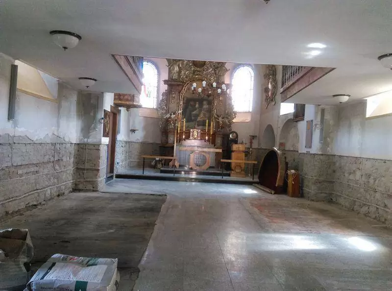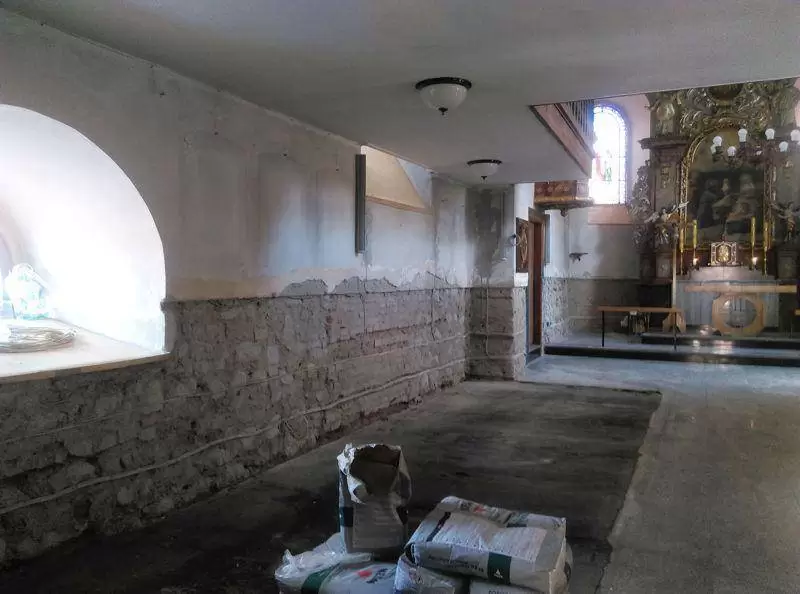 Obecnie wnętrze świątyni jest nie do poznania - brak ławek, ściany pokryte szarym tynkiem, ale to niebawem się zmieni.