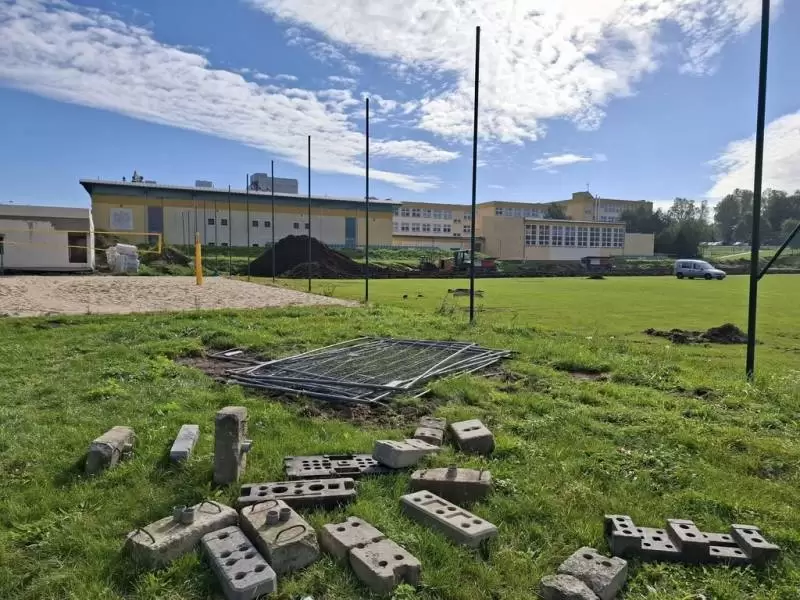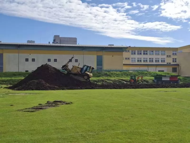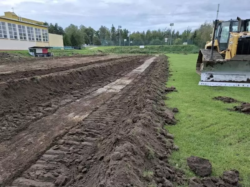 Teren budowy został oznakowany i zabezpieczony, zdemontowano urządzenia naziemne obecnego boiska. W najbliższych dniach wykonawca planuje kontynuację robót ziemnych.