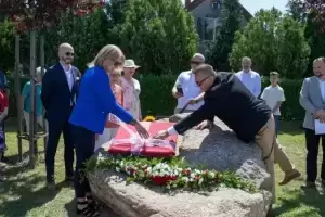 Kulminacyjnym momentem uroczystości było odsłonięcie pamiątkowej tablicy, upamiętniającej tę rocznicę.