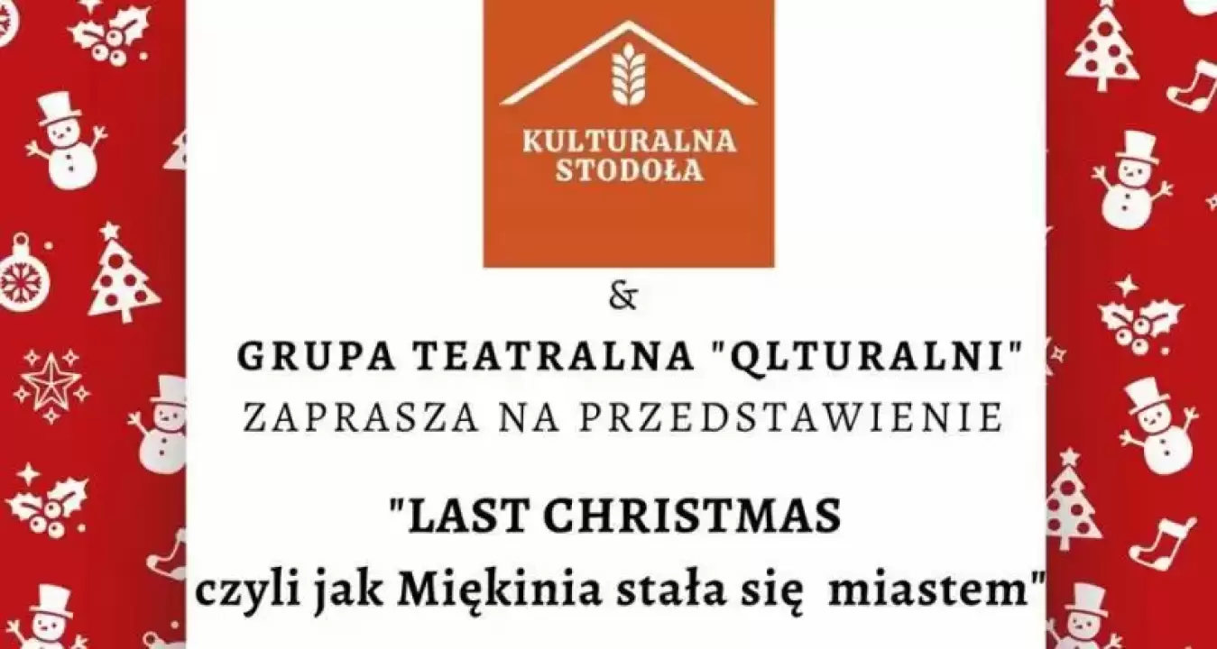 Zapraszamy na premierę przedstawienia „ Last Christmas czyli jak Miękinia stała się miastem” w reżyserii Michała Gawlińskiego, członka Kabaretu Neo-Nówka, która będzie miała miejsce w sobotę 17.12.2022 r. o godz. 19:00 w Kulturalnej Stodole w Lutyni.