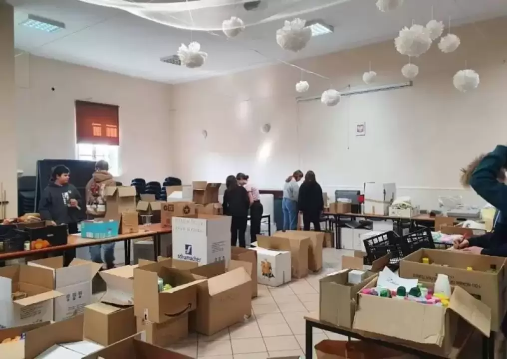 Działająca pod przewodnictwem opiekuna wolontariatu p. Doroty Pańczyszyn grupa wolontariuszy wzięła udział w sortowaniu i pakowaniu artykułów zebranych w świetlicy w Mrozowie ze wszystkich szkół i świetlic gminy. Produkty te posłużą, jako pomoc na start uchodźców z Ukrainy. Wszystkie najpilniejsze artykuły pierwszej potrzeby: pampersy i kosmetyki dla niemowląt, chemia, środki higieny, artykuły spożywcze, spakowane w „kartony z sercem” od firmy Schumacher powędrują do tych, którzy ich najpilniej potrzebują.