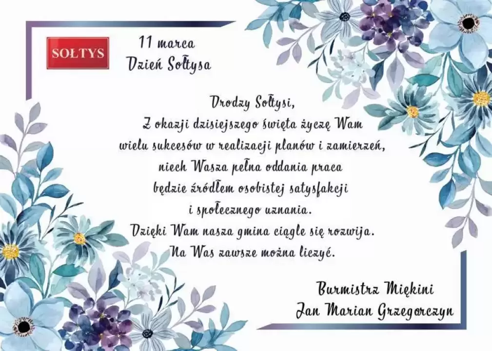 Wszystkiego najlepszego z okazji Dnia Sołtysa życzy Burmistrz Miękini