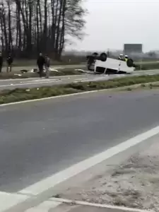 Kierowca Volkswagena chcąc uniknąć zderzenia, stracił panowanie nad pojazdem, dachował i wpadł do przydrożnego rowu.